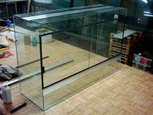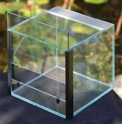 rechts Spezial-Zuluftprofil für Chamäleon-Terrarien, Höhe ca. 8 cm, senkrecht verklebt, volle Bodenfläche des Terrariums nutzbar.