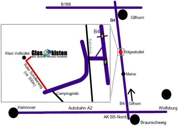 Um den Weg nach Rötgesbüttel zu finden, benutzen Sie bitte das map24 - Formular. Eine die Detailierte Webgeschreibung als Karte und in Textform finden Sie unten ![]() Wegbeschreibung zur Vossheide 1 Über B4 aus Richtung Norden (Uelzen, Gifhorn, Isenbüttel): In Rötgesbüttel an der zweiten Ampel rechts abbiegen. Über B4 aus Richtung Süden (Braunschweig, Meine): In Rötgesbüttel an der ersten Ampel links abbiegen. Am Ende der Straße links Richtung Adenbüttel / Didderse Aus Richtung Celle, Burgdorf über Leiferde: In Ribbesbüttel, etwa 100 m hinter der alten Werkstatt an der Peiner Landstraße, rechts abbiegen Richtung Rötgesbüttel. Auf dieser Straße bleiben. Etwa 1 km hinter Rötgesbüttel, ca. 100 m hinter der Einfahrt zum Campingplatz, knickt die Kreisstraße leicht nach links ab. An dieser Stelle steht auch ein gelb-weißes Vorfahrtsschild. Hier nach rechts auf den Schotterweg abbiegen. Aus Richtung Adenbüttel, Didderse, Hillerse, Rolfsbüttel: Kreisstraße Richtung Rötgesbüttel. Hinter Warmbüttel fährt man ca. 2 km exakt geradeaus durch den Wald. Dann macht die Straße einen Rechtsknick. Genau hier nach links auf den Schotterweg abbiegen. Wenn man am Campingplatz vorbeikommt, hat man die Abfahrt verpasst. Den Schotterweg fährt man bis nach Klein Vollbüttel. Vor (!) dem Ortsschild rechts abbiegen auf den grauen Schotterweg. Hinter dem ersten Haus auf der rechten Seite dem Schotterweg folgend nach rechts auf das Grundstück Vossheide 1 abbiegen. Die Werkstatt liegt genau hinter dem großen, alten Wohnhaus. Handy mitnehmen! Telefonische Führung gibt es unter 0151 / 72 53 23 48 |